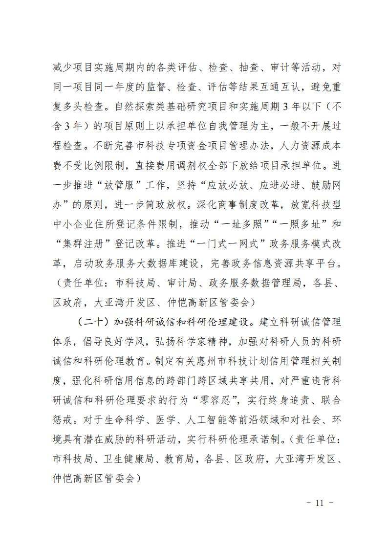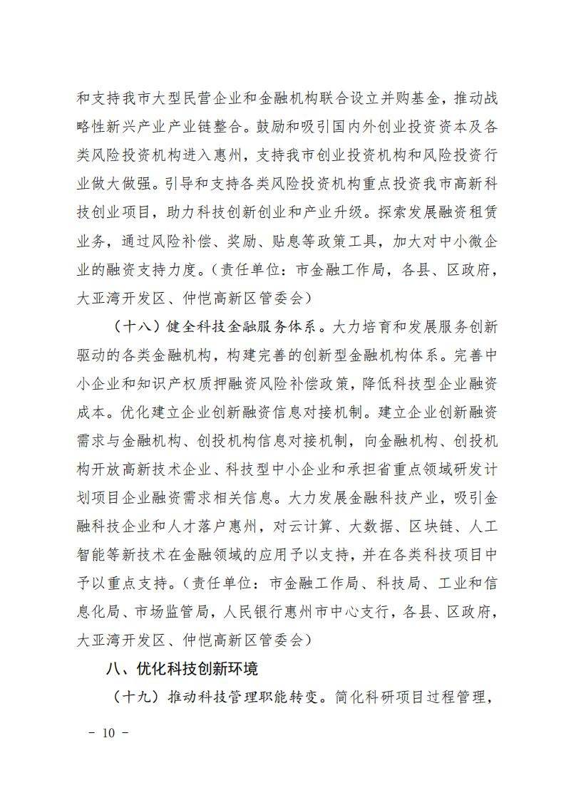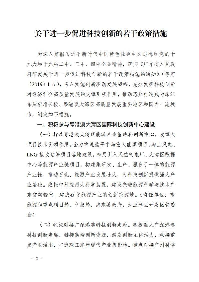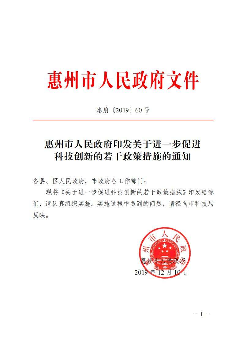 惠州市人民政府印发关于进一步促进科技创新的若干政策措施的通知