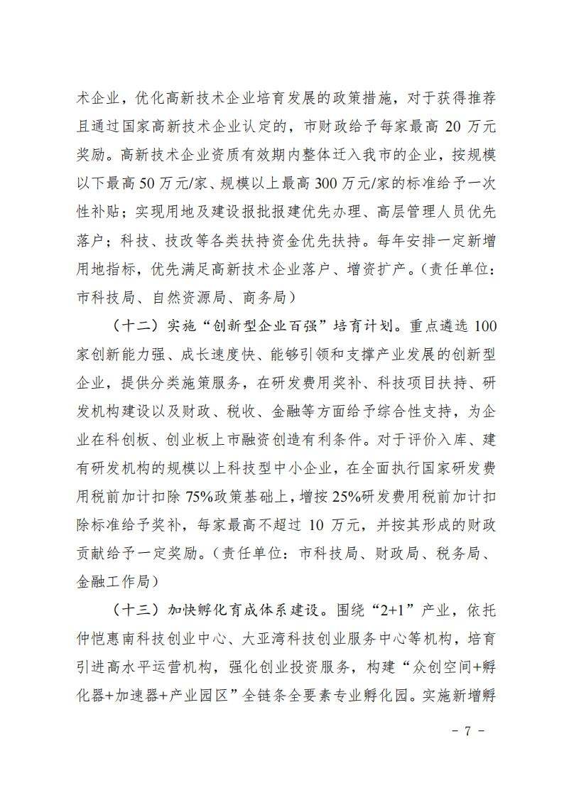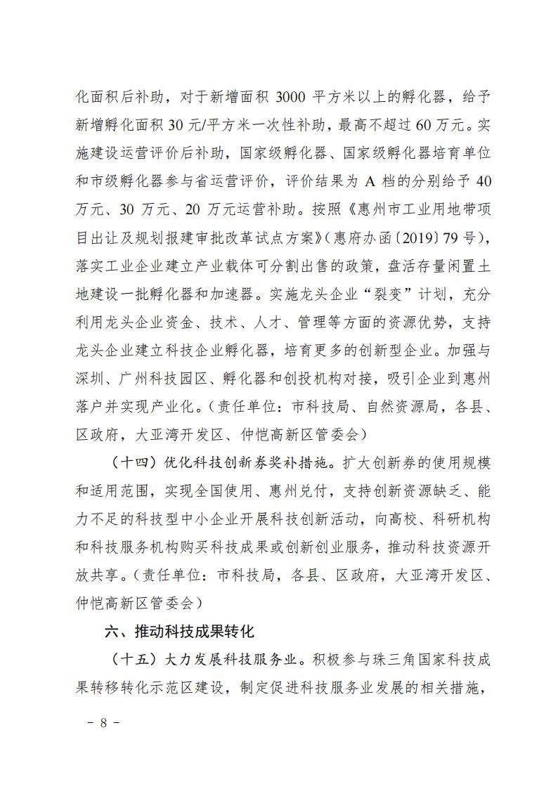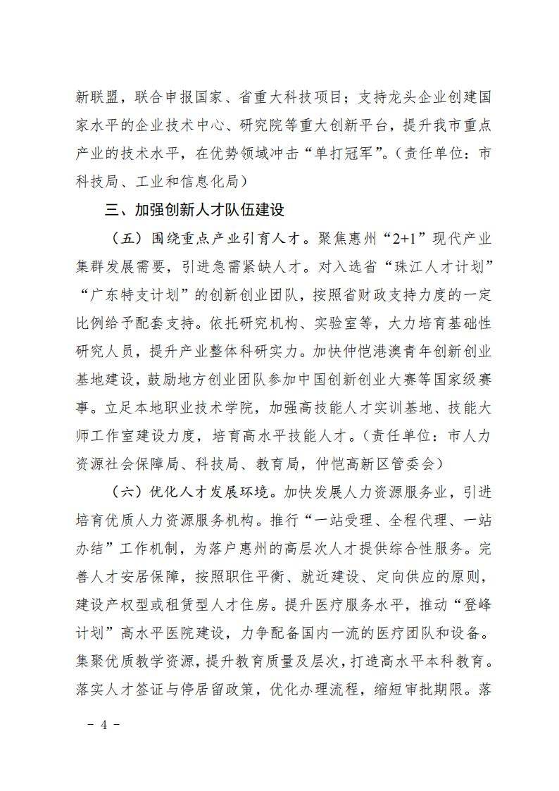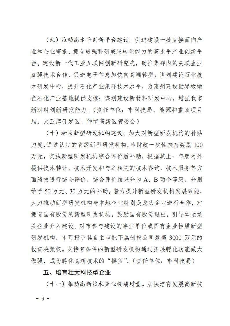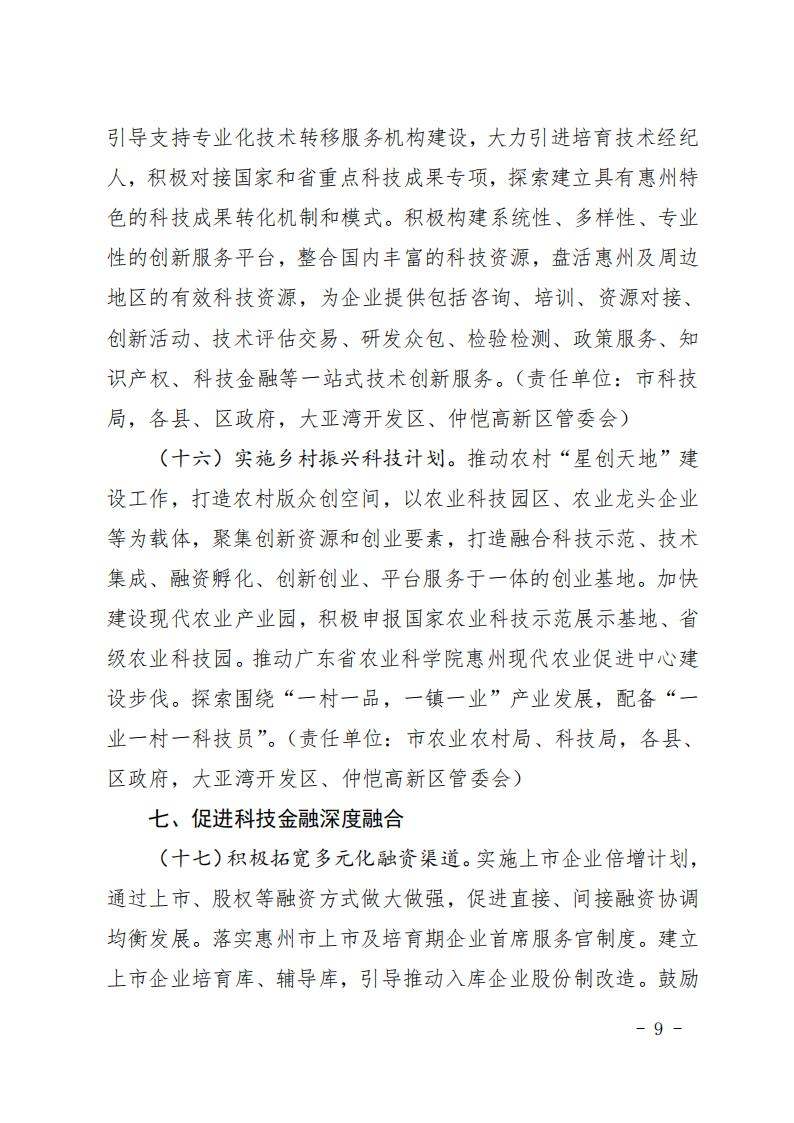 惠州市人民政府印发关于进一步促进科技创新的若干政策措施的通知